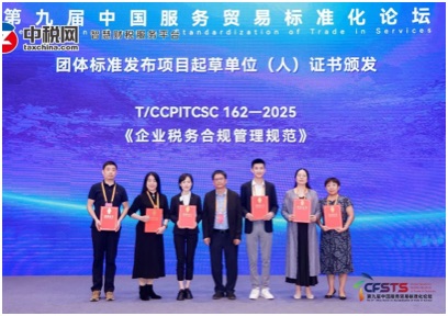 《企业税务合规管理规范》正式发布,首次为企业建立系统、完善的税务合规管理体系提供了清晰、权威的操作指南与评价依据,填补了我国税务合规领域标准化空白。同年9月在第九届中国服务贸易标准化论坛精彩亮相。
