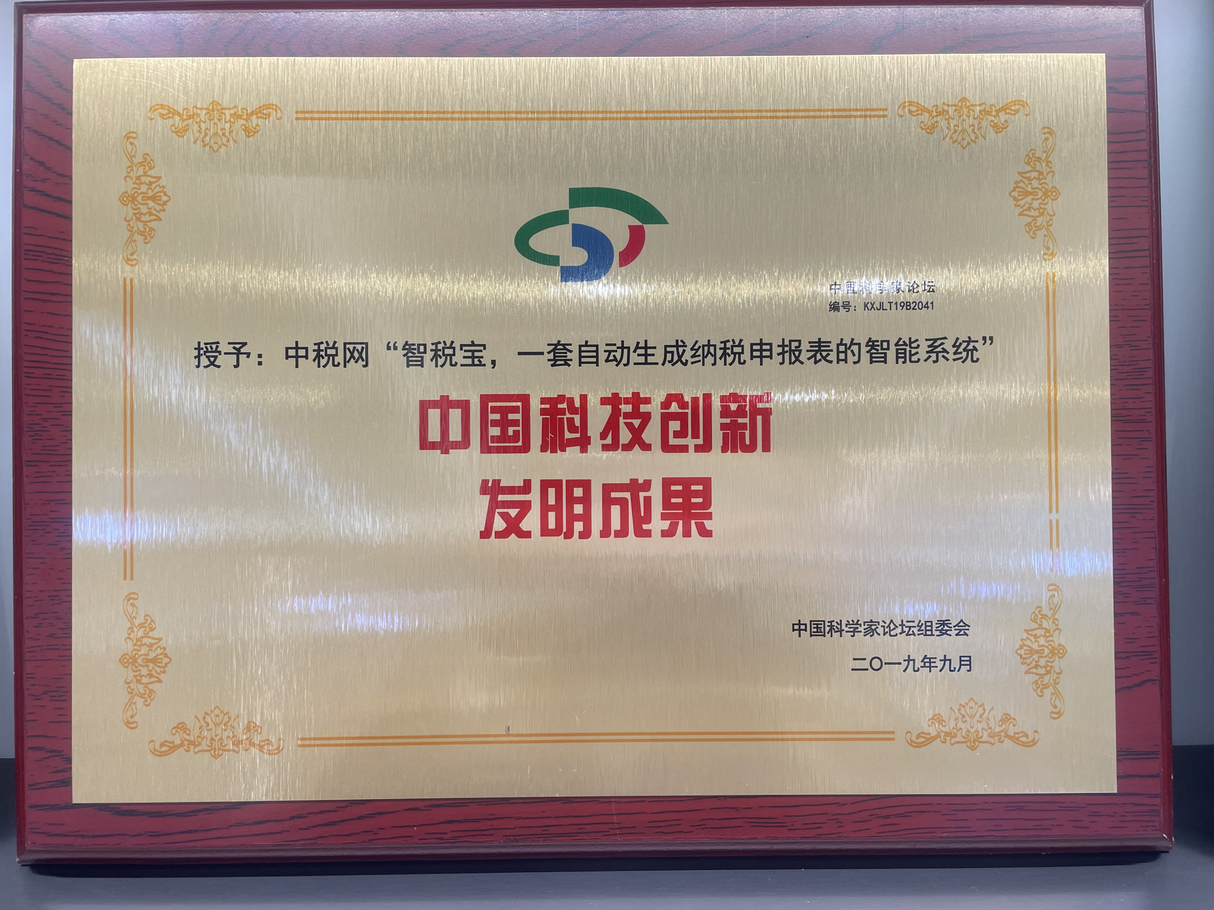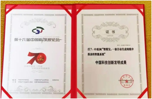 中税网集团“智税宝”获得了中国科学家论坛颁发的“中国科技创新发明成果奖”