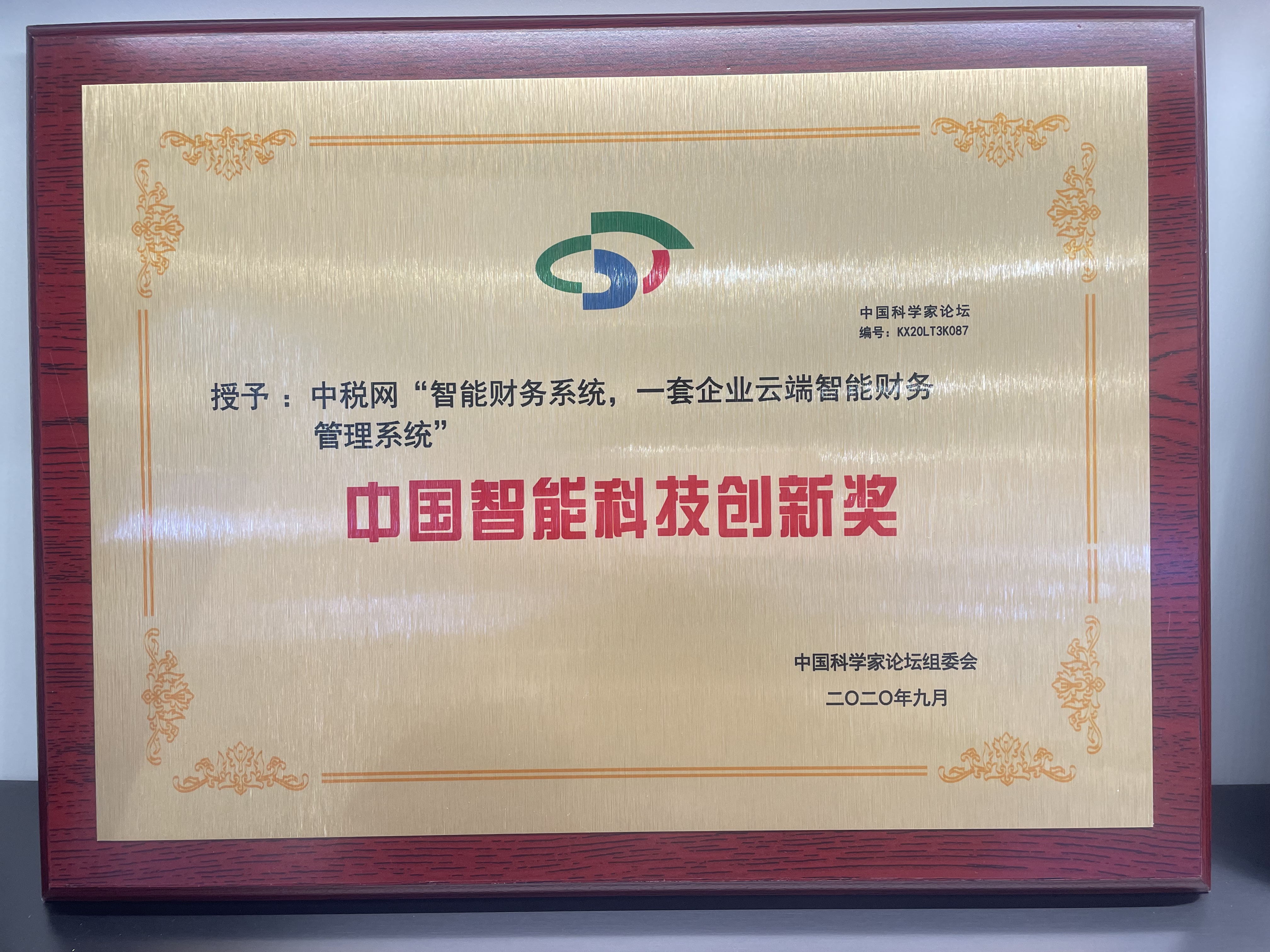 中税网集团“智能财务系统”获得了第十七届中国科学家论坛颁发的“中国智能科技创新奖”及“中国科技创新发明成果奖”
