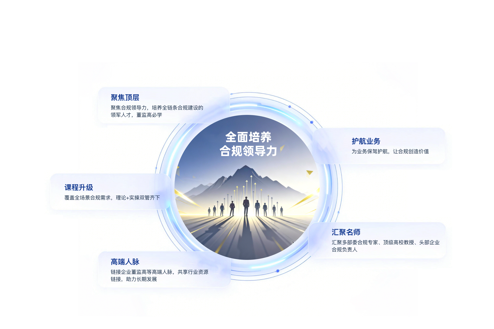 以全面培养合规领导力为核心,通过系统理论学习、深化合规体系认知、专项实操技能掌握及丰富案例解析,解决企业合规理念落后,合规体系建设不足,合规文化浅薄,合规领导型人才缺失的核心问题,助力学员成为卓越的合规管理领袖。